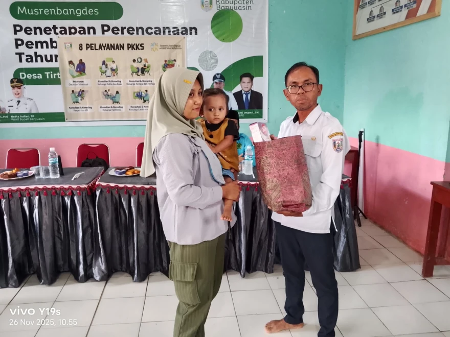 Desa Tirta Harja — Pemerintah Desa Tirta Harja bersama Bidan Desa dan tenaga Penyuluh KB Kecamatan Muara Sugihan melaksanakan kegiatan Pemberian Makanan Tambahan (PMT) bagi balita dan ibu hamil pada Rabu (26/11/2025). Kegiatan ini dilakukan sebagai upaya meningkatkan status gizi masyarakat serta mencegah kasus kekurangan gizi di wilayah Desa Tirta Harja.